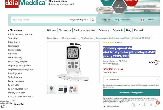 Aparat do elektrostymulacji RoovJoy R-C4D prądy TENS/EMS - Dla sportowców - Po urazach - Spalenie tkanki tłuszczowej - ...