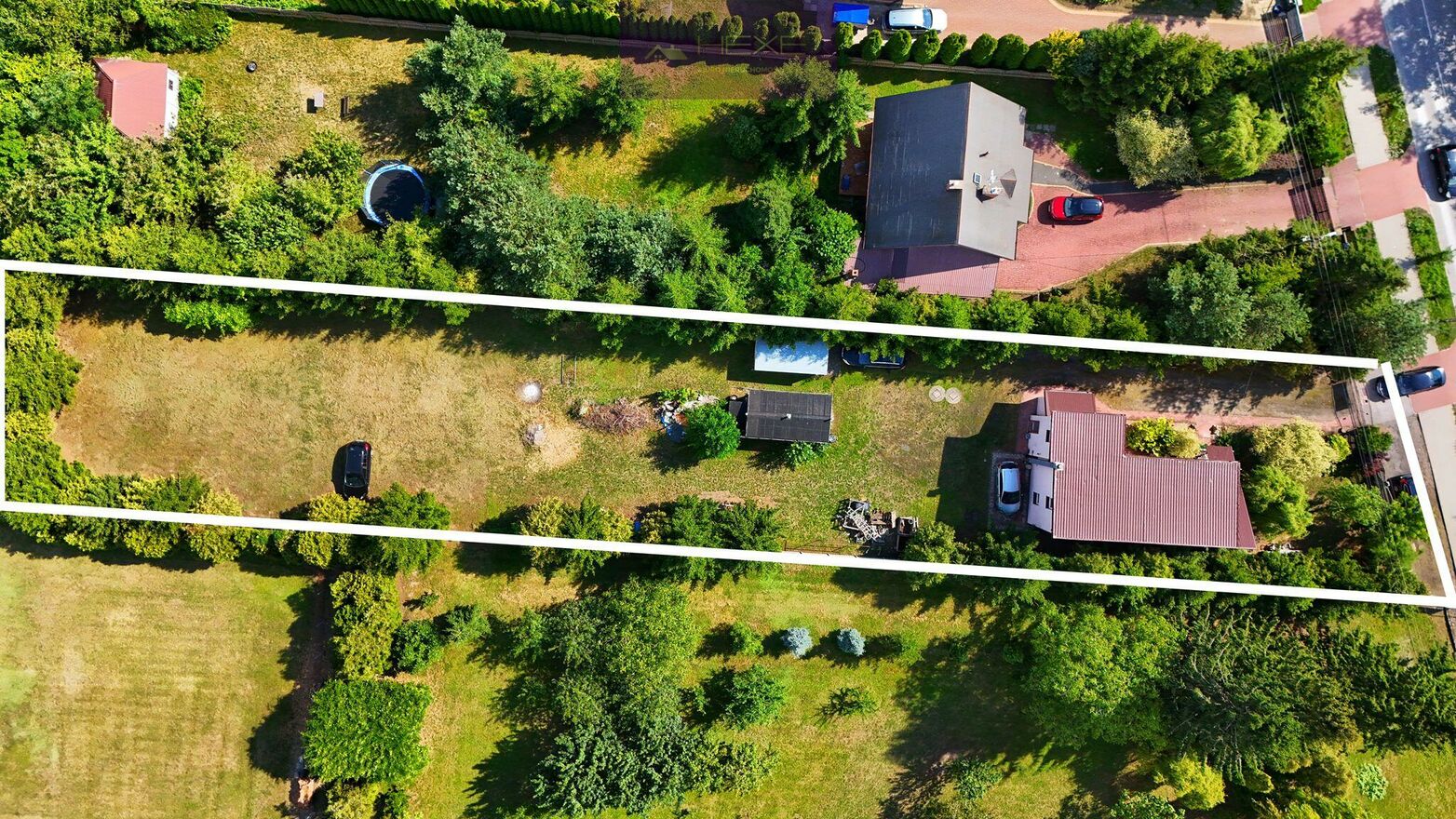 Na posesji znajdują się osobne dwa garaże jednostanowiskowe.Media: prąd, kanalizacja miejska, gaz w drodze, światłowód.