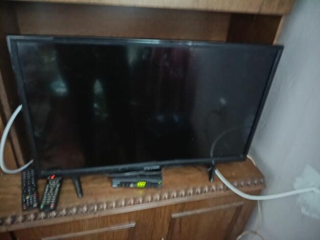 TV 19 cali z wbudowanym dekoderem T-2 HEVC 265 do odbioru telewizji nowej generacji w idealnym stanie Posiada przyciski do ...