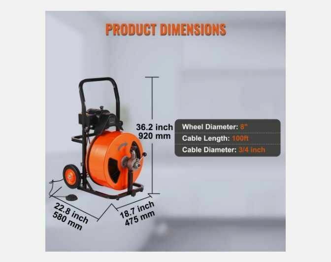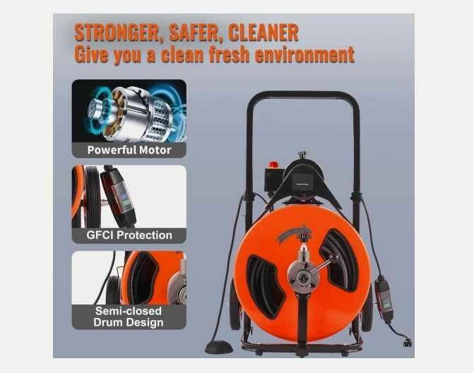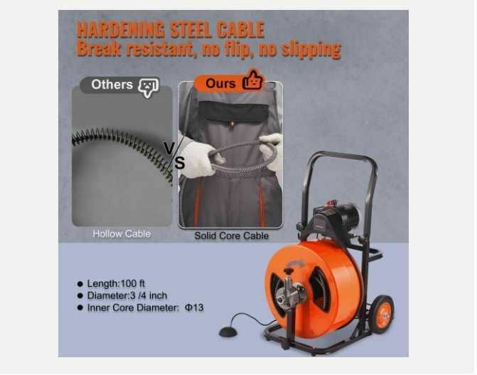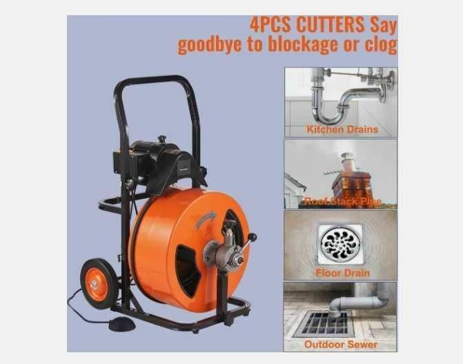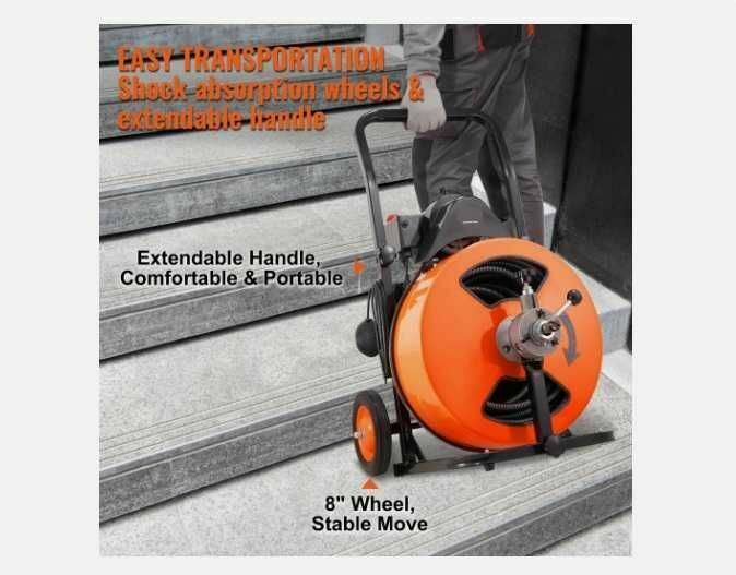 Czyszczenie odpływów kanalizacyjnych od 30mm do 200mmTa maszyna została opracowana specjalnie do kanalizacyjnych odpływów wewnątrz i zewnętrznych - skutecznie usuwa zatory. Chowany uchwyt zapewnia wygodny chwyt i łatwość manewrowania.